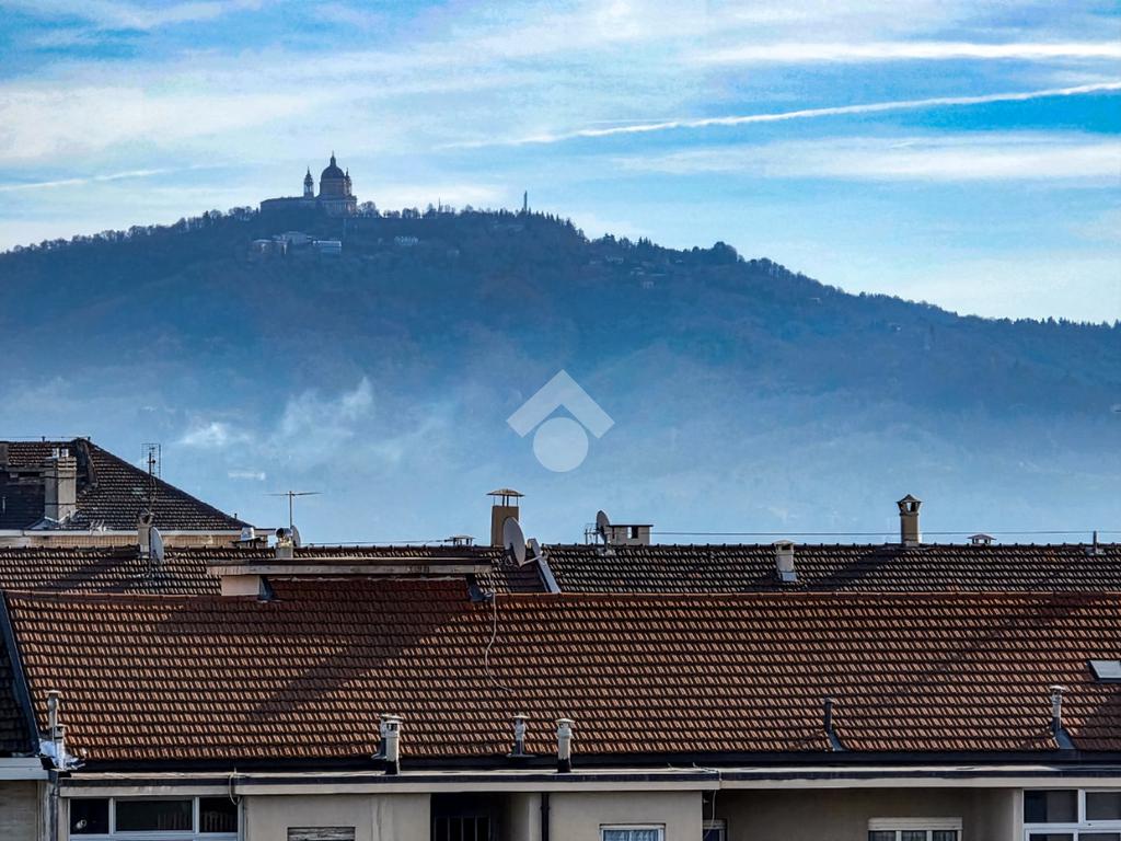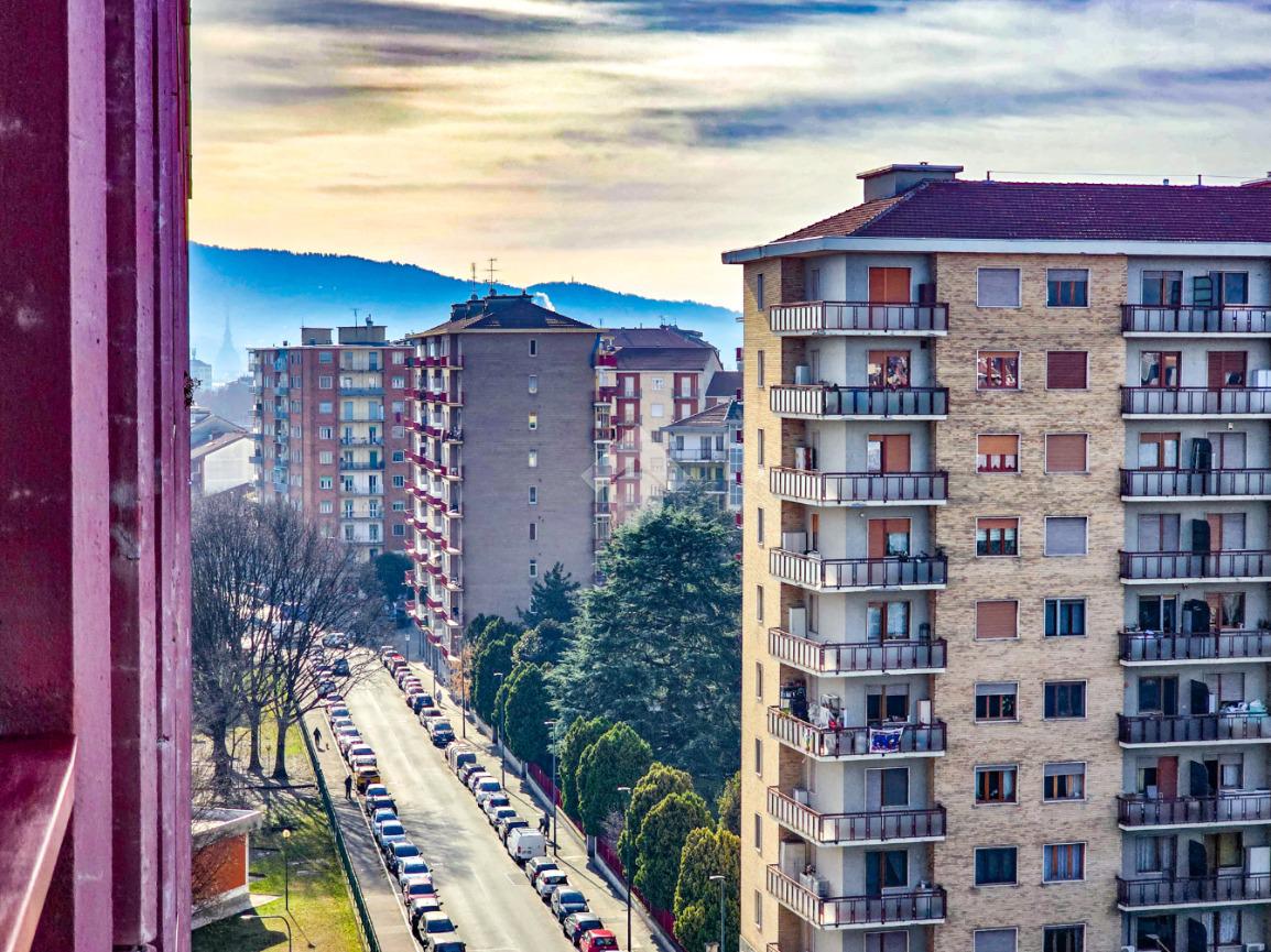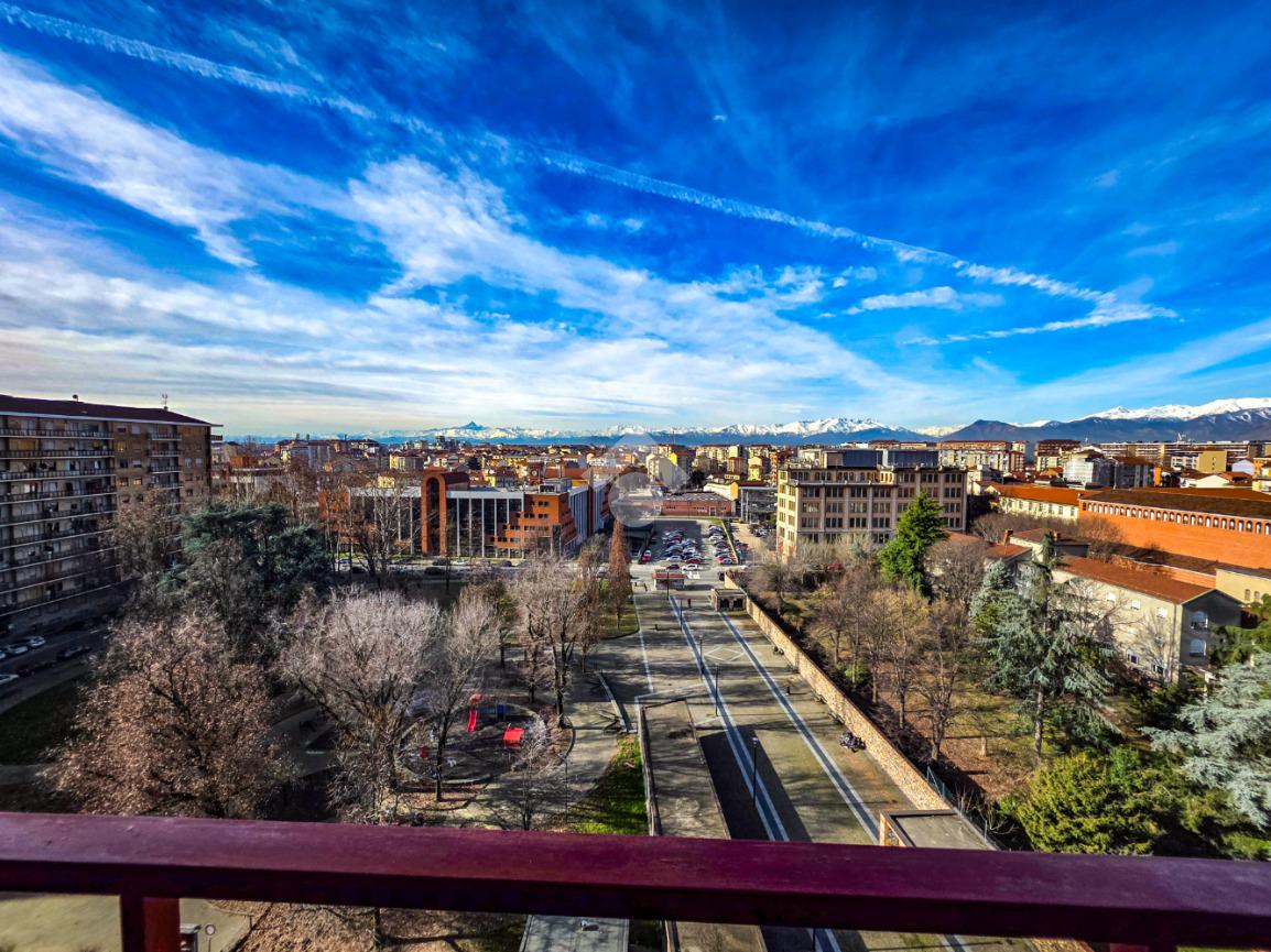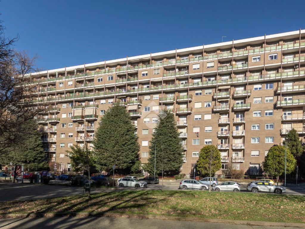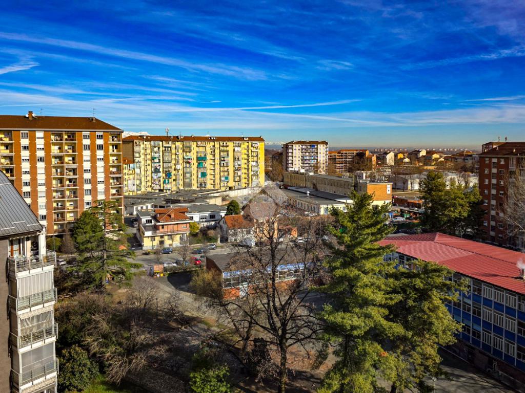 In una delle posizioni più ricercate del quartiere, con affaccio diretto su Piazza Bonghi, sorge un elegante complesso residenziale degli anni ’70, caratterizzato da un’impronta signorile ancora oggi evidente. Il palazzo, alto nove piani, si presenta con una facciata in paramano, soluzione estetica e al tempo stesso pratica, pensata per garantire ordine e facile manutenzione nel tempo. Un vialetto immerso nel verde del giardino condominiale accompagna al portone in vetro e metallo. L’androne, curato e accogliente, è rifinito prevalentemente in marmo e impreziosito da un elegante tappeto rosso sui primi gradini. Una seconda porta in vetro satinato separa l’ingresso dal vano scale, dove l’ascensore conduce comodamente al piano. L’appartamento, situato a un piano alto, regala una splendida vista panoramica: da un lato le montagne, dall’altro la suggestiva Basilica di Superga. La doppia esposizione assicura luce naturale per tutta la giornata, valorizzando ogni ambiente. Varcata la porta blindata, l’ingresso disimpegna in modo ordinato tutti i locali. Gli infissi con doppi vetri garantiscono comfort termico e acustico. La cucina è abitabile e dotata di un comodo locale dispensa. La sala, ampia e luminosa, offre spazio e libertà di arredo, diventando il cuore conviviale della casa. La zona notte comprende due camere da letto ben squadrate. I doppi servizi rappresentano un importante valore aggiunto: il bagno principale è finestrato e completo di box doccia, il secondo dispone di vasca e wc. Ripostiglio e cantina completano la funzionalità degli spazi. Due i balconi: quello interno cortile è attrezzato come zona lavanderia con lavabo e attacco per la lavatrice. A completare la proprietà, un box auto doppio in larghezza al primo piano interrato, con accesso automatizzato e luce interna, proposto a euro 35.000, soluzione che consente di parcheggiare due auto affiancate con estrema comodità. Il contesto è apprezzato per la presenza di aree verdi, scuole e mezzi pubblici nelle immediate vicinanze, rendendo l’immobile ideale per chi desidera comfort, luminosità e una vista panoramica in un ambiente residenziale curato.