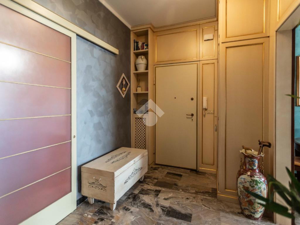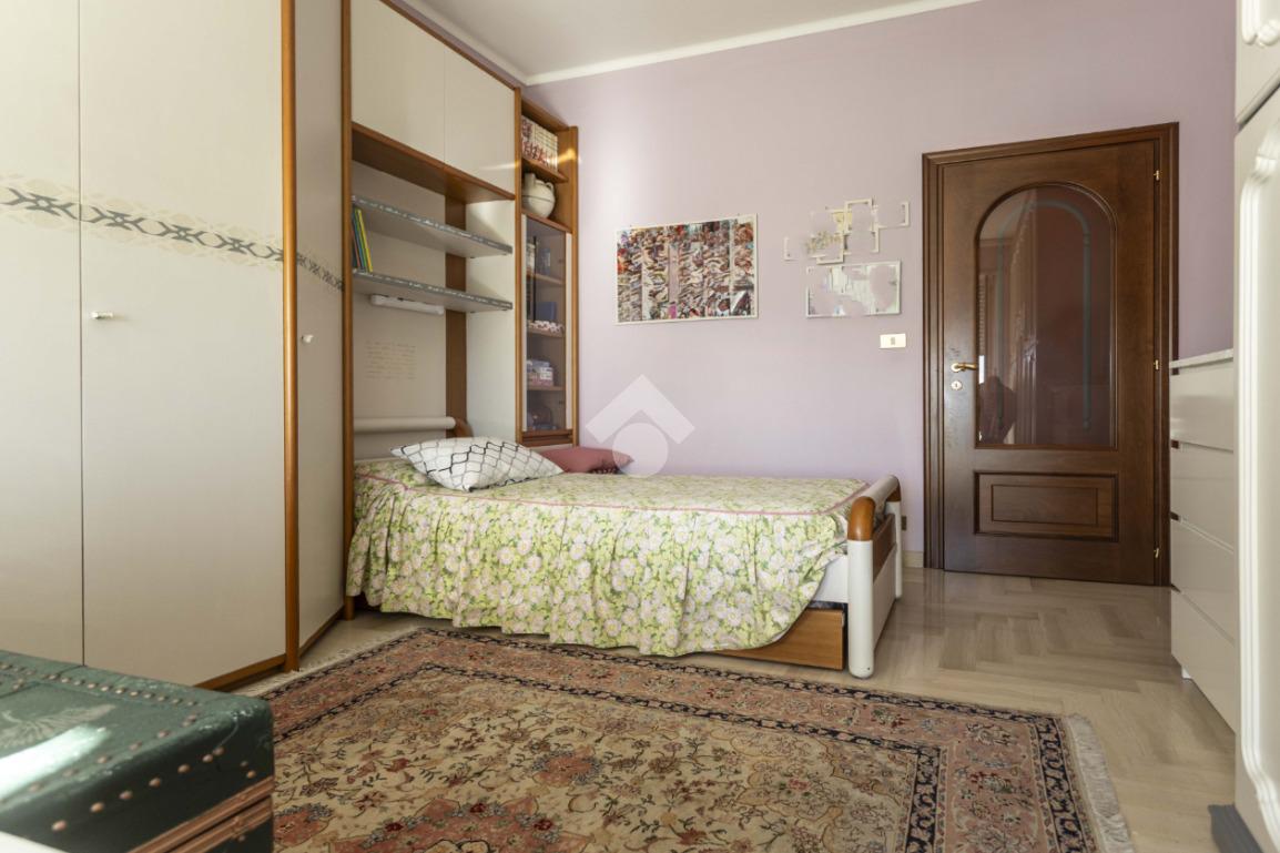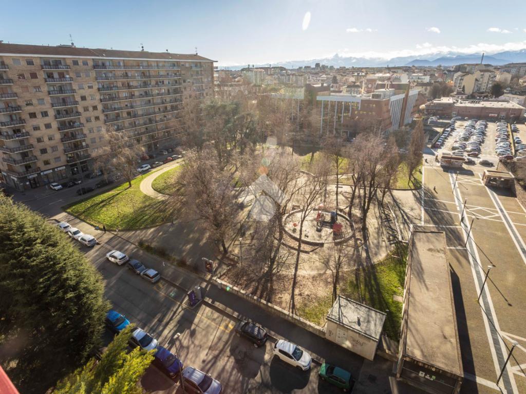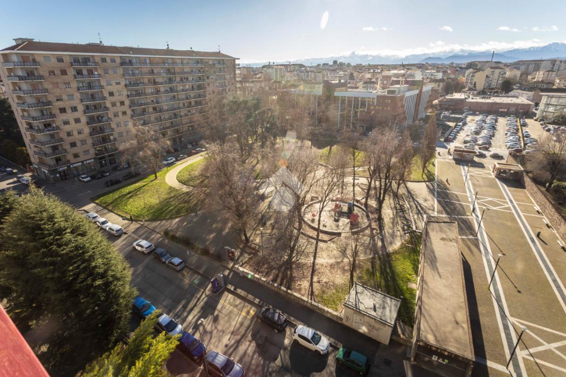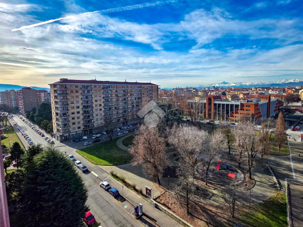 In una delle posizioni più ricercate del quartiere, con affaccio diretto su Piazza Bonghi, sorge un elegante complesso residenziale degli anni ’70, caratterizzato da un’impronta signorile ancora oggi evidente. Il palazzo, alto nove piani, si presenta con una facciata in paramano, soluzione estetica e al tempo stesso pratica, pensata per garantire ordine e facile manutenzione nel tempo. Un vialetto immerso nel verde del giardino condominiale accompagna al portone in vetro e metallo. L’androne, curato e accogliente, è rifinito prevalentemente in marmo e impreziosito da un elegante tappeto rosso sui primi gradini. Una seconda porta in vetro satinato separa l’ingresso dal vano scale, dove l’ascensore conduce comodamente al piano. L’appartamento, situato a un piano alto, regala una splendida vista panoramica: da un lato le montagne, dall’altro la suggestiva Basilica di Superga. La doppia esposizione assicura luce naturale per tutta la giornata, valorizzando ogni ambiente. Varcata la porta blindata, l’ingresso disimpegna in modo ordinato tutti i locali. Gli infissi con doppi vetri garantiscono comfort termico e acustico. La cucina è abitabile e dotata di un comodo locale dispensa. La sala, ampia e luminosa, offre spazio e libertà di arredo, diventando il cuore conviviale della casa. La zona notte comprende due camere da letto ben squadrate. I doppi servizi rappresentano un importante valore aggiunto: il bagno principale è finestrato e completo di box doccia, il secondo dispone di vasca e wc. Ripostiglio e cantina completano la funzionalità degli spazi. Due i balconi: quello interno cortile è attrezzato come zona lavanderia con lavabo e attacco per la lavatrice. A completare la proprietà, un box auto doppio in larghezza al primo piano interrato, con accesso automatizzato e luce interna, proposto a euro 35.000, soluzione che consente di parcheggiare due auto affiancate con estrema comodità. Il contesto è apprezzato per la presenza di aree verdi, scuole e mezzi pubblici nelle immediate vicinanze, rendendo l’immobile ideale per chi desidera comfort, luminosità e una vista panoramica in un ambiente residenziale curato.