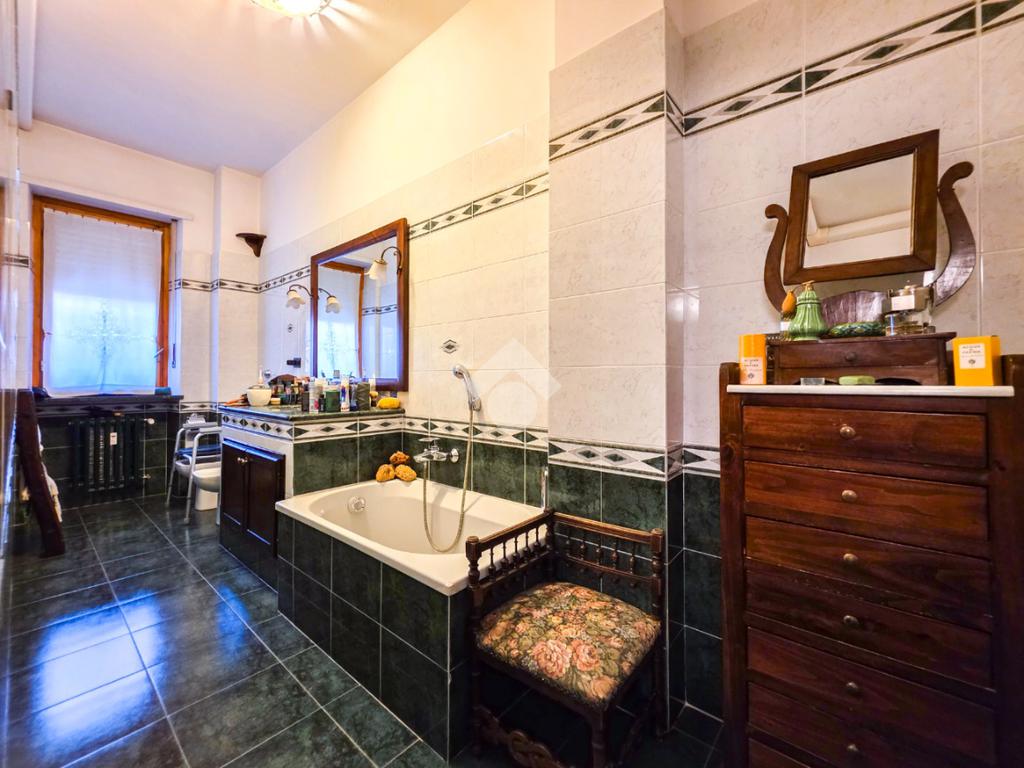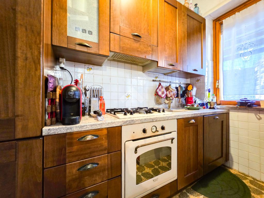 In un contesto residenziale di sei piani, edificato negli anni ’70 e situato in via Breglio, si inserisce questa soluzione abitativa che gode di una posizione strategica, comoda a tutti i principali servizi offerti dal quartiere. Lo stabile si presenta in ottimo stato manutentivo in tutte le sue parti comuni. Il prospetto, realizzato in paramano, rappresenta un dettaglio architettonico elegante e al tempo stesso pratico, grazie alla sua facilità di manutenzione. L’androne, ampio e accogliente, colpisce per la sua imponenza: le pareti laterali sono rivestite da specchi che amplificano la luminosità e lo spazio, mentre i gradini che conducono al vano scala sono rifiniti in marmo, conferendo ulteriore pregio all’ingresso. L’edificio è inoltre dotato di ascensore e videocitofono, elementi che garantiscono comfort e sicurezza. L’appartamento si sviluppa su una metratura generosa e ben distribuita. L’ingresso, accessibile tramite porta blindata, introduce in un ambiente ordinato che conduce al soggiorno, spazio accogliente ideale per i momenti di relax in famiglia. Proprio nell’ingresso è installato lo split dell’aria condizionata, posizionato strategicamente per garantire una diffusione ottimale dell’aria fresca nei diversi ambienti della casa. Il tinello si distingue per la sua ampiezza, mentre la cucina, a vista ma leggermente rientrata, mantiene una piacevole riservatezza pur restando in comunicazione con la zona giorno. La zona notte ospita due camere da letto di taglio regolare, affiancate tra loro. Entrambe risultano particolarmente ariose e luminose grazie alle ampie finestre che lasciano filtrare abbondante luce naturale durante tutto l’arco della giornata. Il bagno, recentemente ristrutturato, è completo di tutti i sanitari ed è dotato sia della vasca che del box doccia. A completare la proprietà troviamo un comodo ripostiglio e una cantina al piano interrato, ideali per soddisfare ogni esigenza di spazio. Gli interni si presentano prevalentemente nello stato originale, ma ben conservati, attualmente vi è una pavimentazione in marmo su tutta la superficie ad eccezione della cucina. Allo stesso tempo, l’immobile offre interessanti potenzialità per chi desidera personalizzare gli ambienti con una ristrutturazione moderna, dando forma a una casa perfettamente in linea con i propri gusti ed esigenze. Il riscaldamento è dotato di termovalvole, consentendo una gestione più efficiente e consapevole dei consumi. Completa l’offerta la possibilità di acquistare un box auto singolo al prezzo di € 16.900.